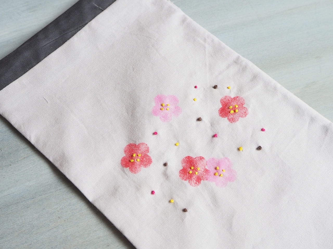 ザッカバッカの1月の巾着袋は、梅の花です。 ザッカバッカの1月の巾着袋 梅の花をステンシル 刺しゅうと言っても、 梅の花の部分はステンシルで色をつけています。 真ん中のチョンチョンとした部分や、まわりのアクセントに刺しゅうをしています。 刺しゅうと言っても難しいテクニックは必要ではありません。 「フレンチナッツ・ステッチ」といって、玉止めと同じやり方です。 ただの玉止めですが、布に刺しゅうをするとポンポンと小さな玉が浮かび上がって、とてもかわいいのです。 ステンシルだけだと平面的で面... -