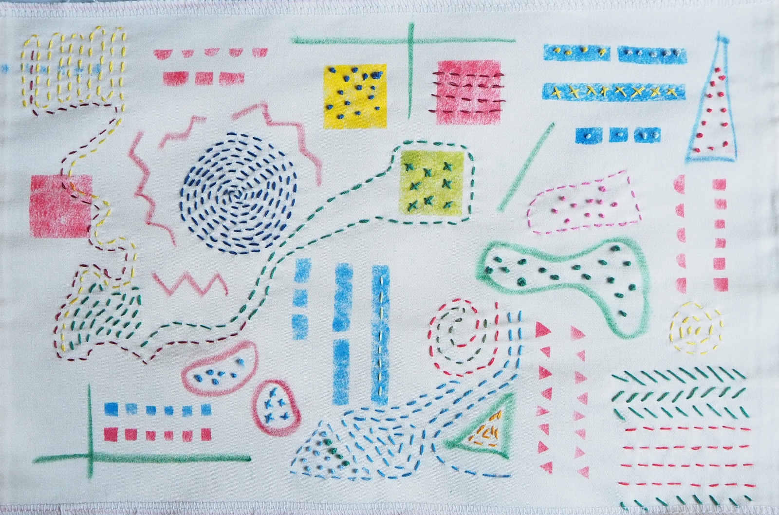 それでは、誰でもわかるようにお花のリースを作っていきます。 まずは、リースの土台になる葉っぱの部分をステンシルしておきます。 この部分を刺しゅうでやろうとすると、とっても大変!挫折してしまう可能性が大です。 リース土台部分はステンシルで 次に、今回使う刺しゅう糸を決めます。今回は春らしい色ということで、淡いピンク、イエロー、ブルーの3色にしました。 といっても、途中ですごく似ている色があったらそれを使っても大丈夫。現に、今回「同じピンクだろう」と思ってピンクッションに刺さってい... -