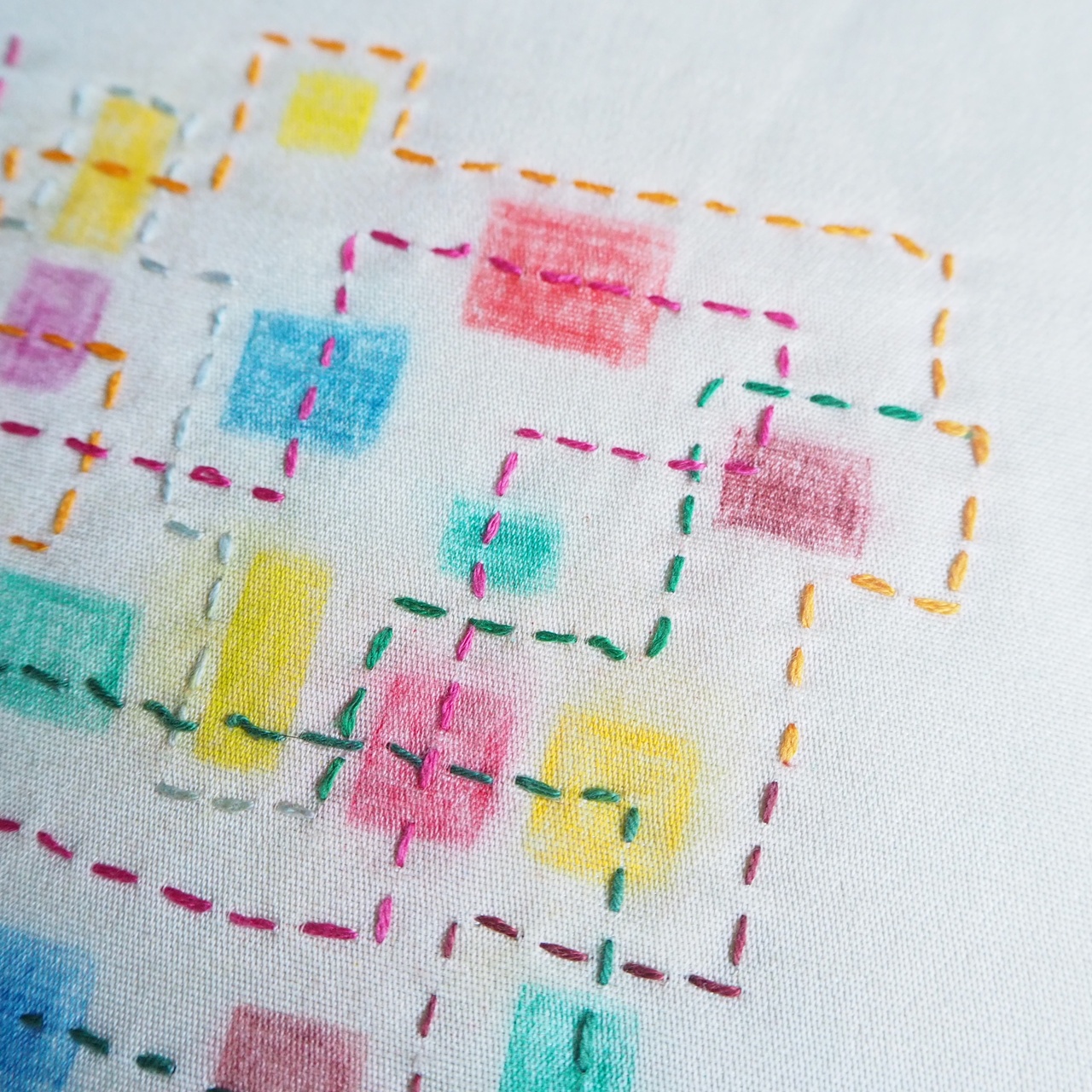 四角をつないで作る刺しゅうのデザイン