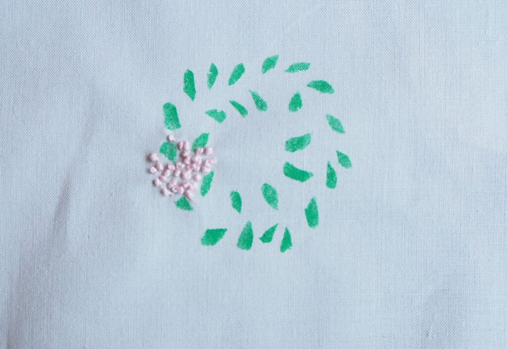 まずは、リースの土台になる葉っぱの部分をステンシルしておきます。