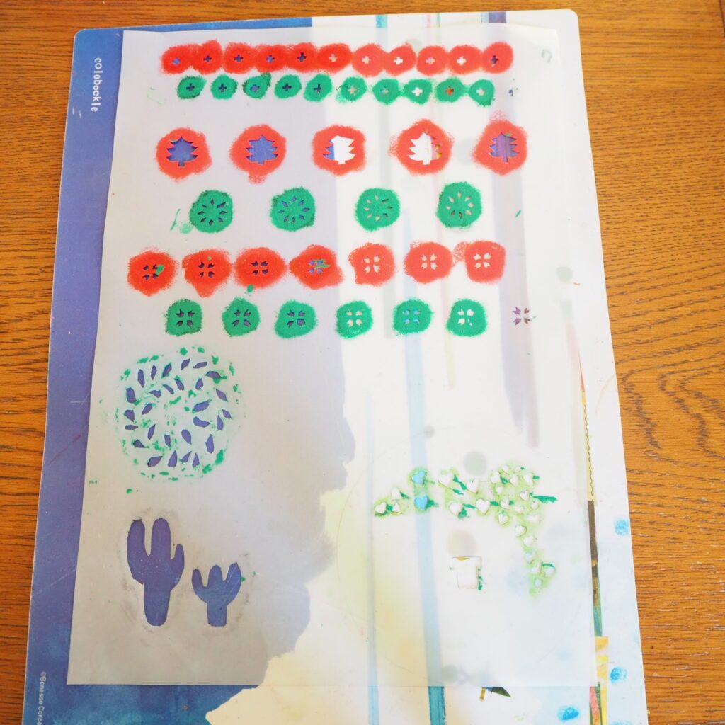 ステンシルのコツは、「絵の具をつけすぎないこと」です。