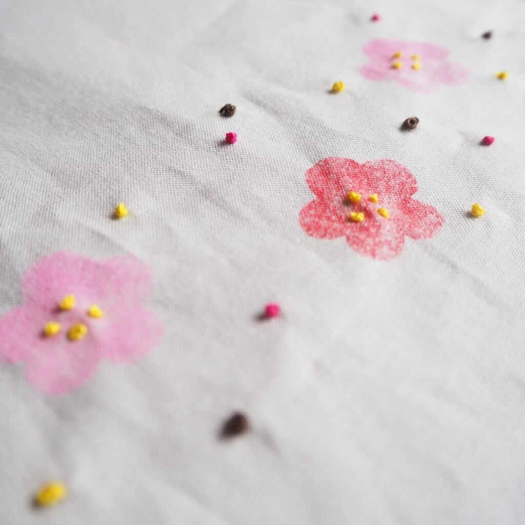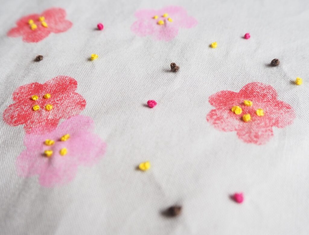 ただの玉止めですが、布に刺しゅうをするとポンポンと小さな玉が浮かび上がって、とてもかわいいのです。